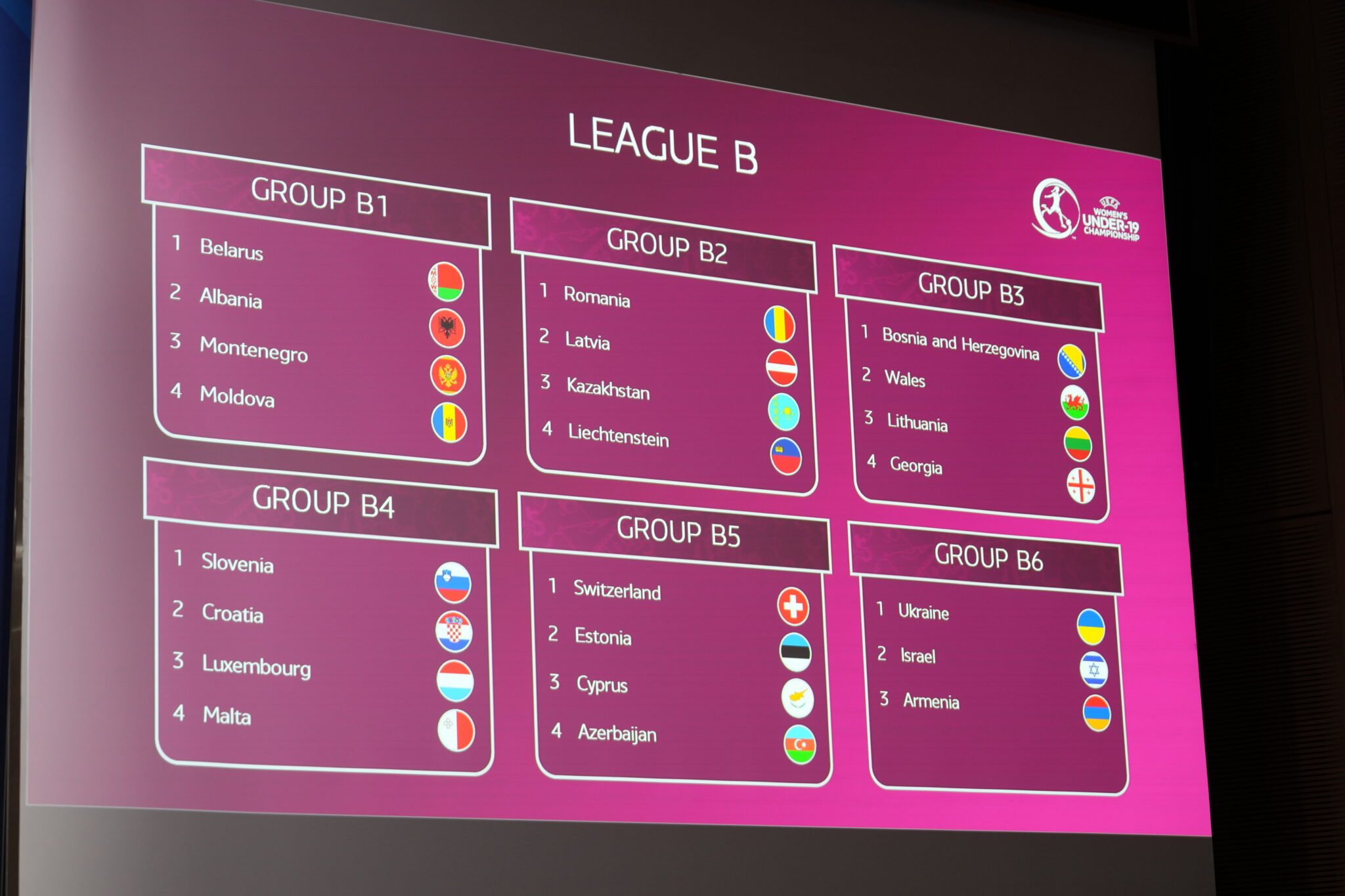 Në shortin e hedhur paraditen e sotme në selinë e UEFA-s, vajzat kuqezi mësuan se do të kenë përballë Bjellorusinë, Malin e Zi dhe Moldavinë, teksa do të jenë pjesë e grupit B1 në Ligën B.