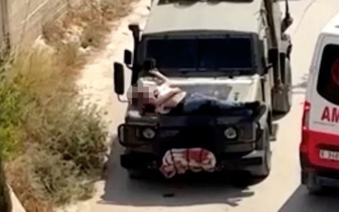 Një video që qarkulloi në mediat sociale tregoi një burrë, i identifikuar ndryshe si Muxhahid Azmi ose Fayyad, nga lagjja Jabriyat midis qyteteve Burqin dhe Jenin, i lidhur në pjesën e përparme të një automjeti fuoristradë, që shihet duke kaluar dy ambulanca.