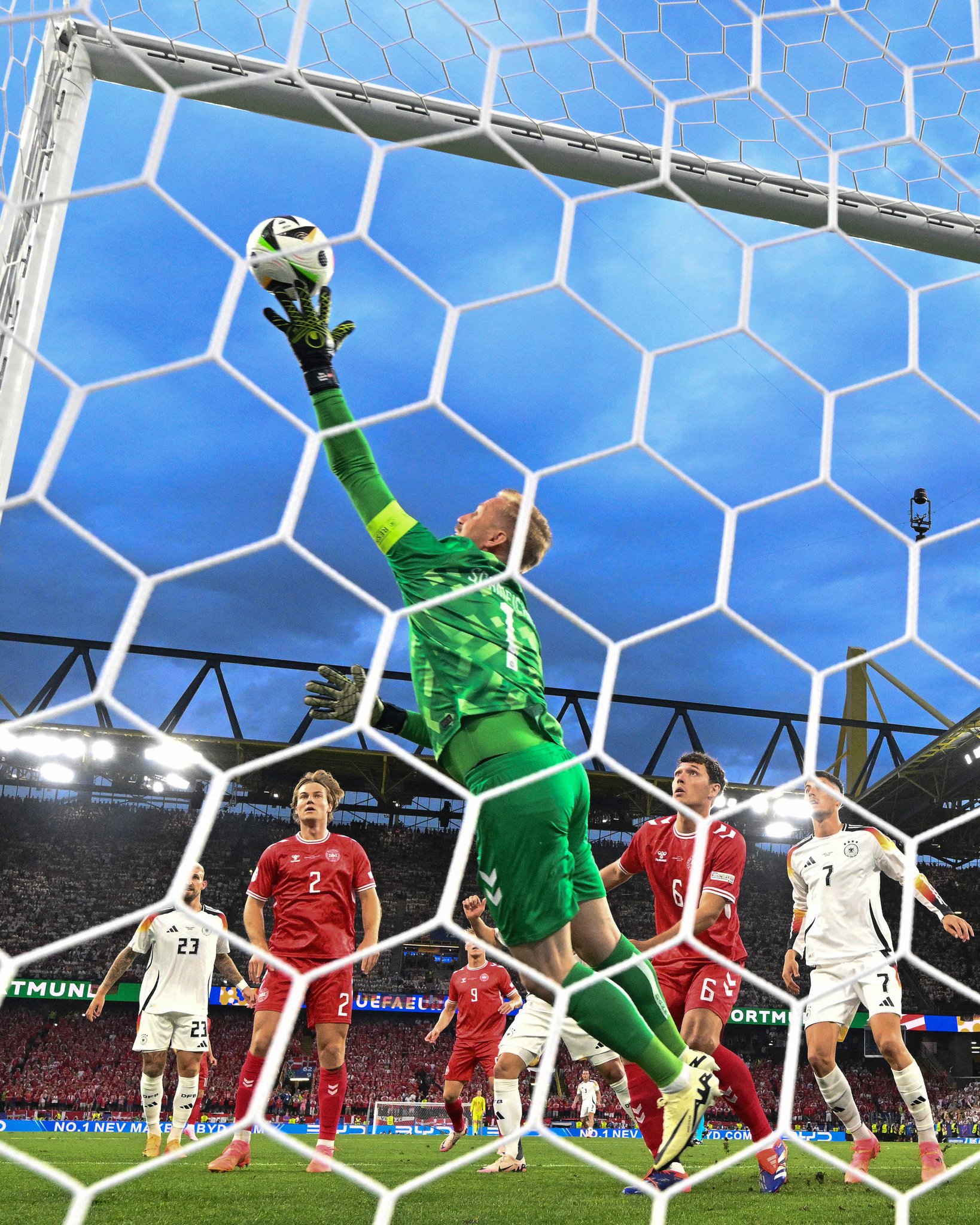 Madje, danezët mund të kishin surprizuar vendasit kur iu afruan ndjeshëm golit në fundin e pjesës së parë, por për tu ndaluar nga një super Neuer.