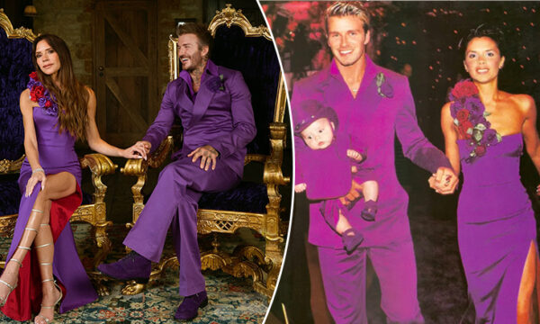 david-dhe-victoria-beckham-rikrijojne-veshjet-e-tyre-te-famshme-te-dasmes,-te-cilat-ishin-ngjyre-vjollce
