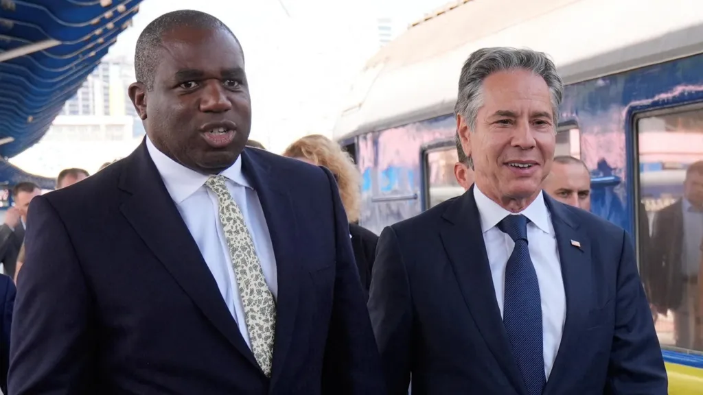 Lammy udhëtoi për në kryeqytetin ukrainas me Sekretarin e Shtetit të SHBA, Antony Blinken pas bisedimeve në Londër.
