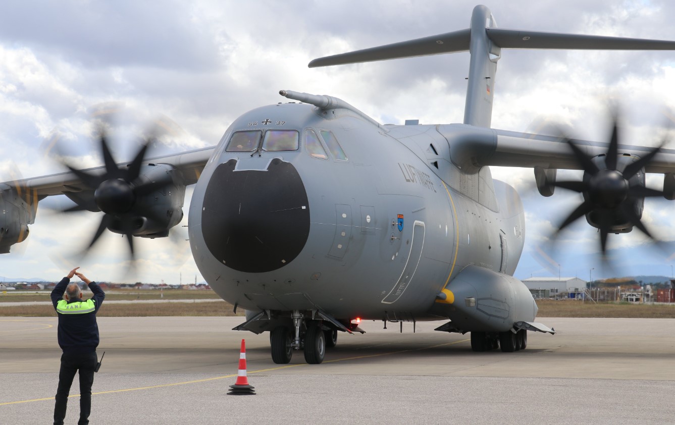 “20 ushtarë nga kontingjenti gjerman i dislokimit në KFOR zbarkuan në Kosovë me një Airbus A400M. A400M fluturon rregullisht për të transportuar personel dhe material për Bundeswehrin dhe për të siguruar gatishmërinë operacionale të kontingjentit”, thuhet në njoftimin e Bundeswehrit.